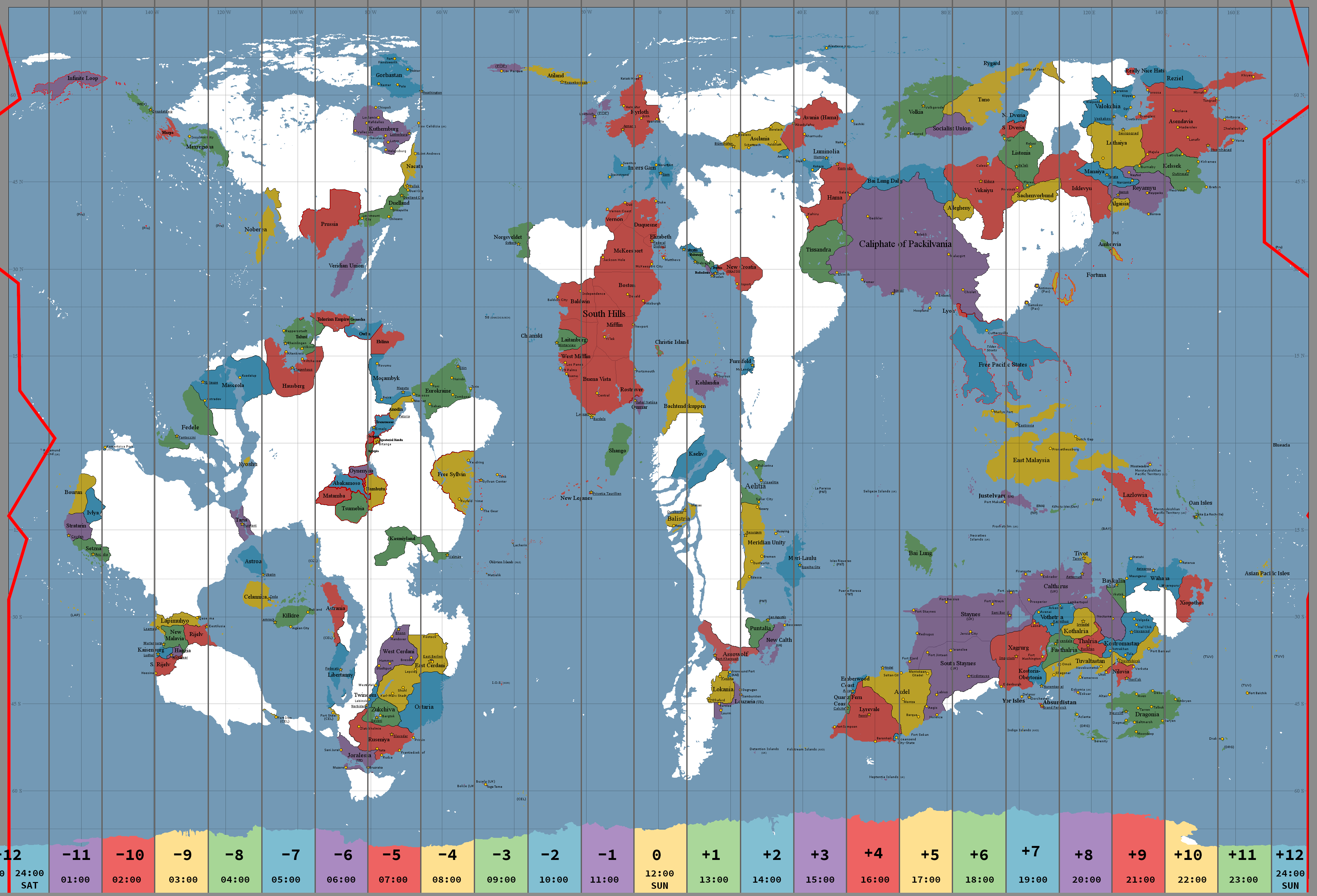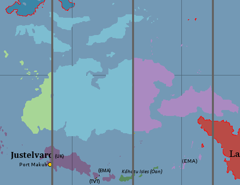 Okay, I just asked because I wanted the south-western Caltharus that’s in +9 to be in +8 and all of Justelvard to be +7. I’d preferably have Louzaria in +2 so it is in line with New Calthia and closer to Aurora, with the Morstaybishlian West Pacific Territories to be in +8 instead of +9 and +10. Not sure how that would work as some of it borders the Oan Isles. Apart from that and as far as I can see there are no things out of place